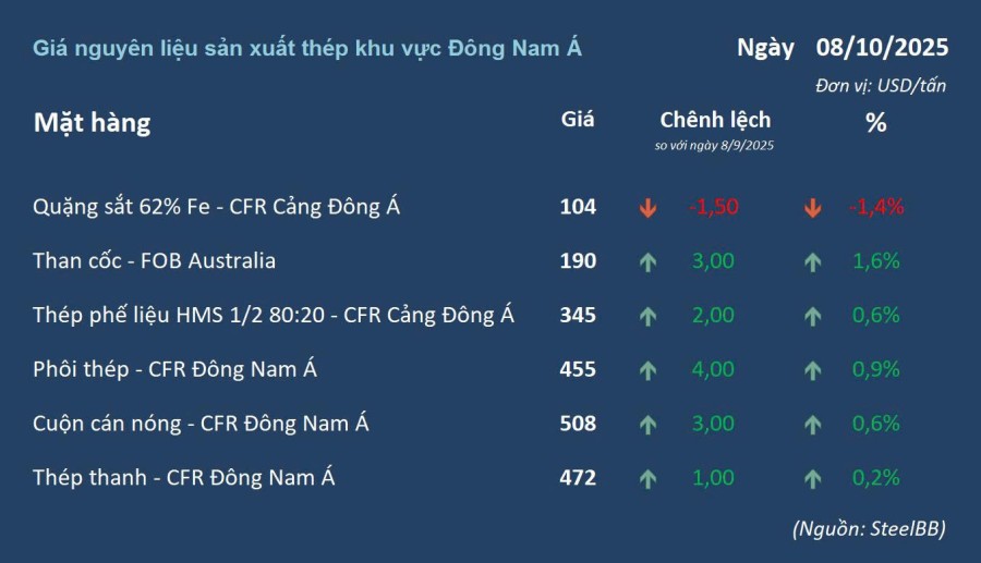 Thị trường phôi thép ASEAN mở cửa không mấy sôi động sau khi kỳ nghỉ Tuần lễ Vàng của Trung Quốc kết thúc, chủ yếu ở mức giá trước kỳ nghỉ lễ.